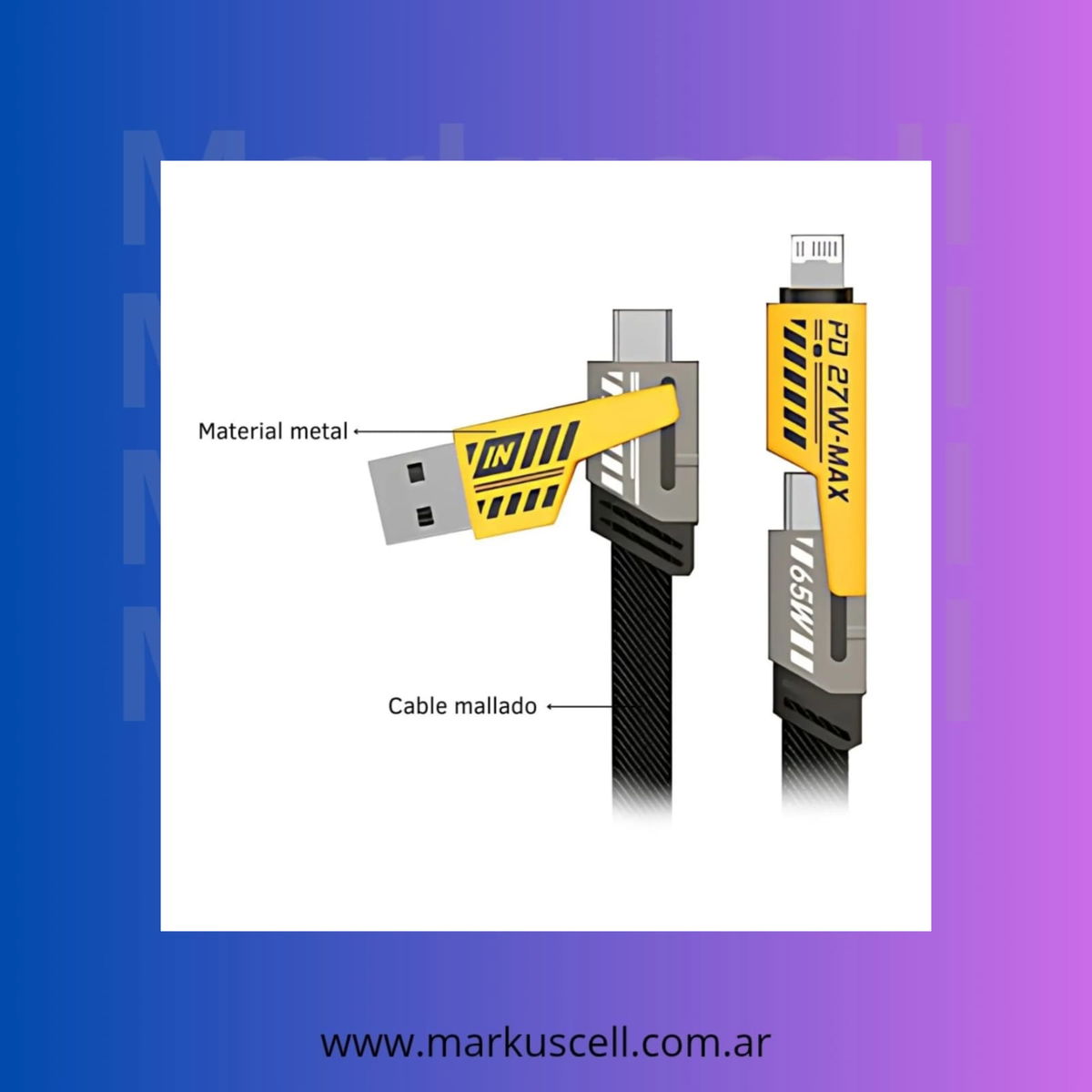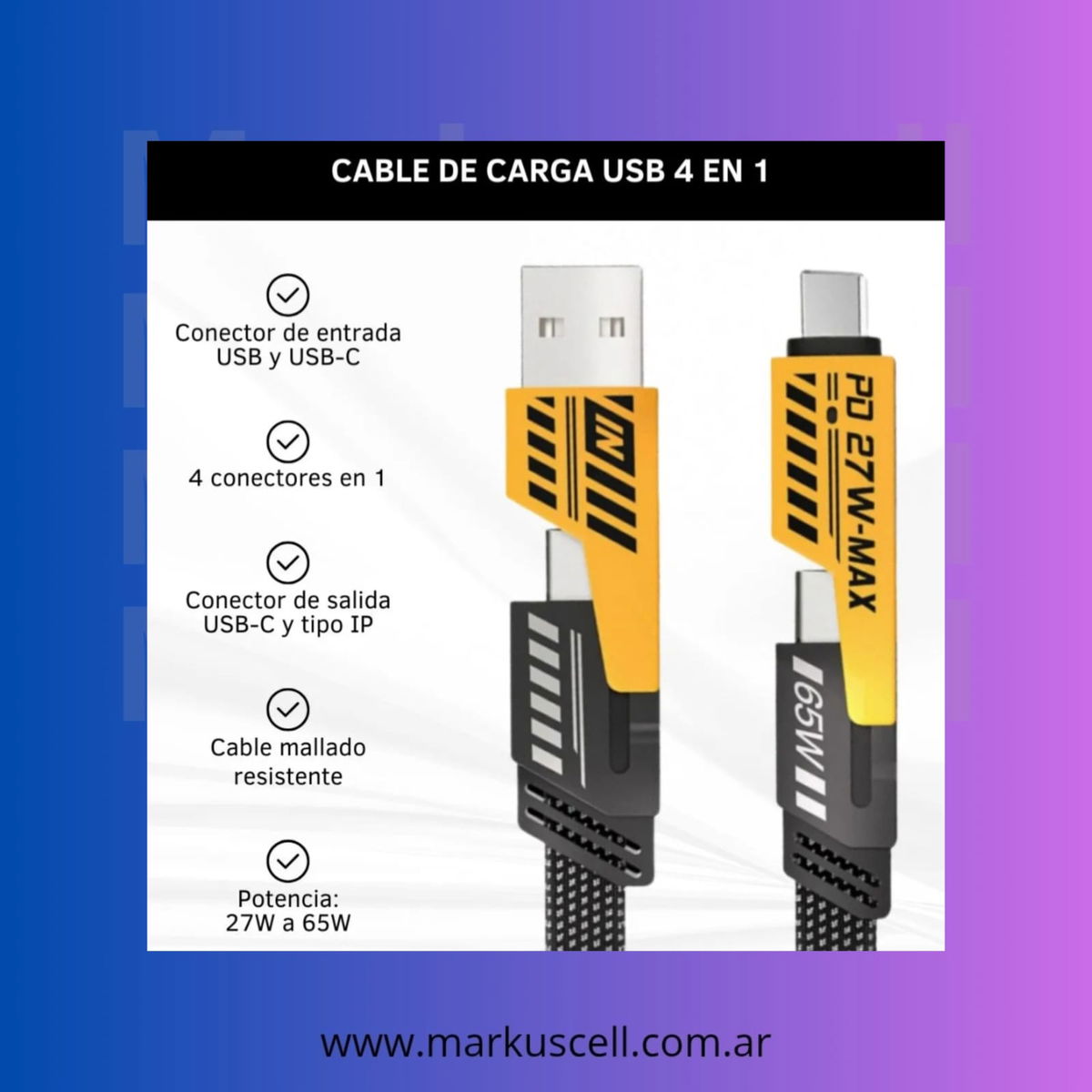 Experimente una carga de nivel superior con la capacidad de carga rápida del cable universal 4 en 1. Compatible con PD3.0 y QC3.0, hasta 65 W (puerto USB C)/PD 27 W, diseñado a partir de 5 hilos avanzados de núcleo de cobre estañado de baja pérdida que logra una menor resistencia. Compatible con la serie iPhone 15 y la serie Samsung Galaxy, una cargas de hasta 30 minutos. (Nota: la velocidad de carga real depende de su dispositivo y del cargador de pared)