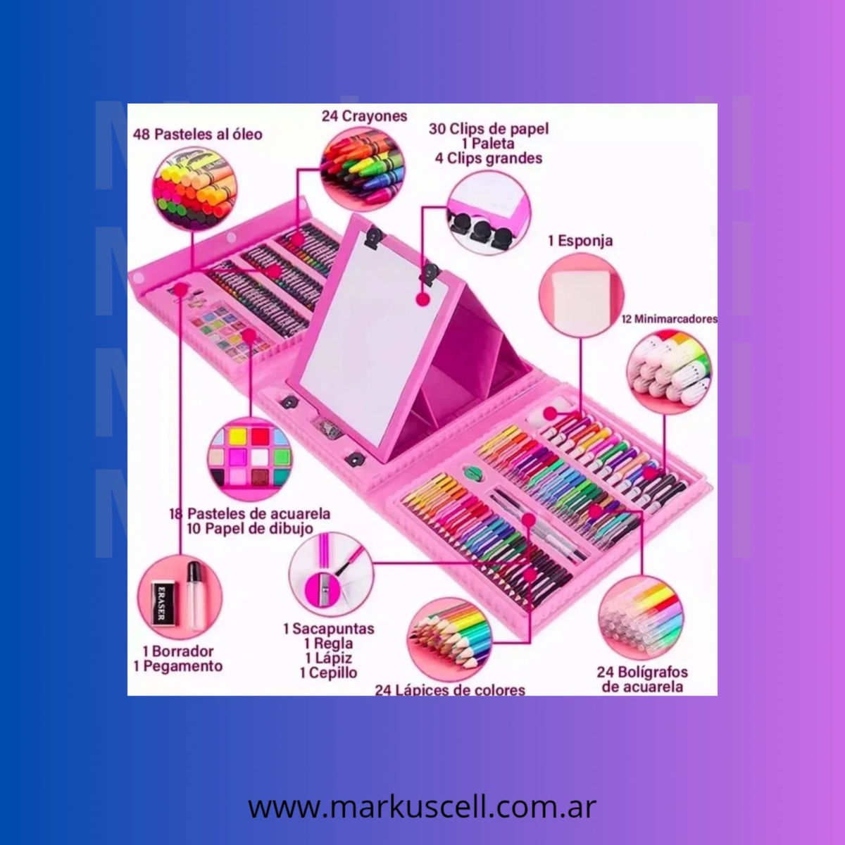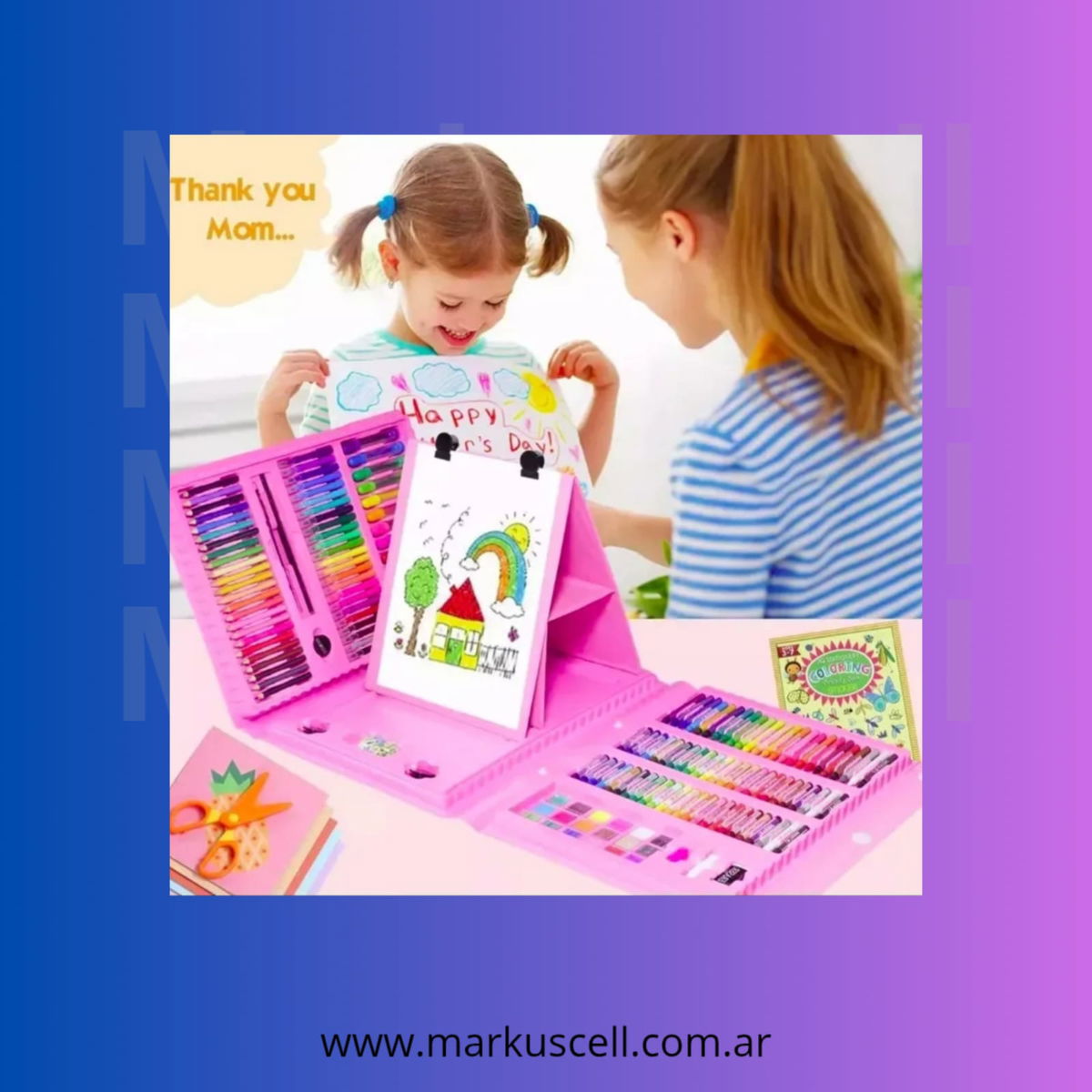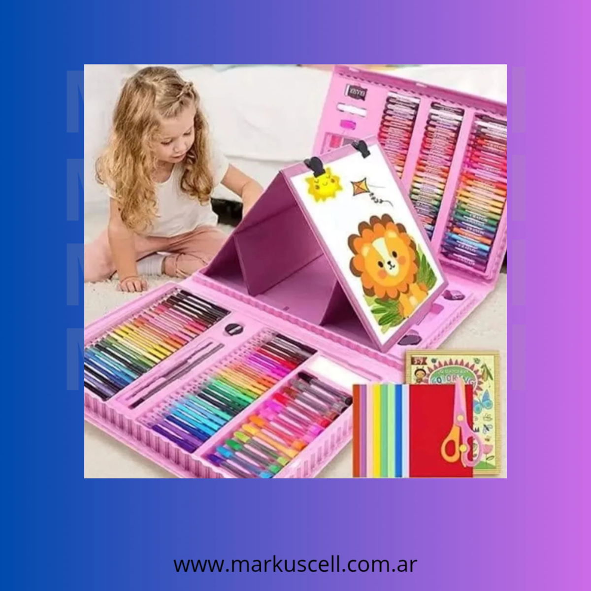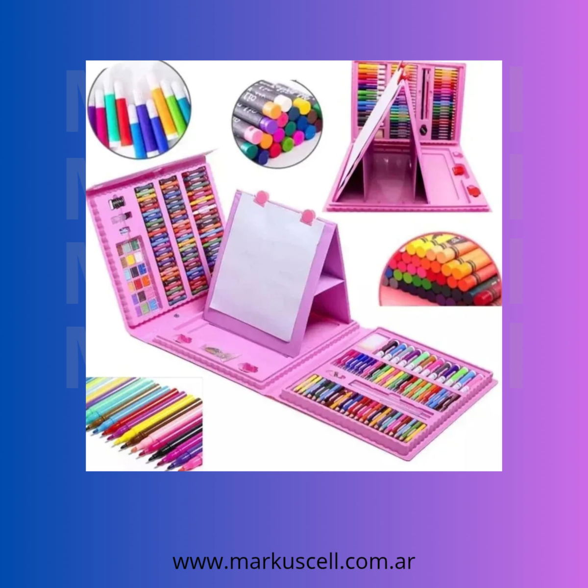 Set Arte Infantil Dibujo Pintura Maletín Madera Valija X 208