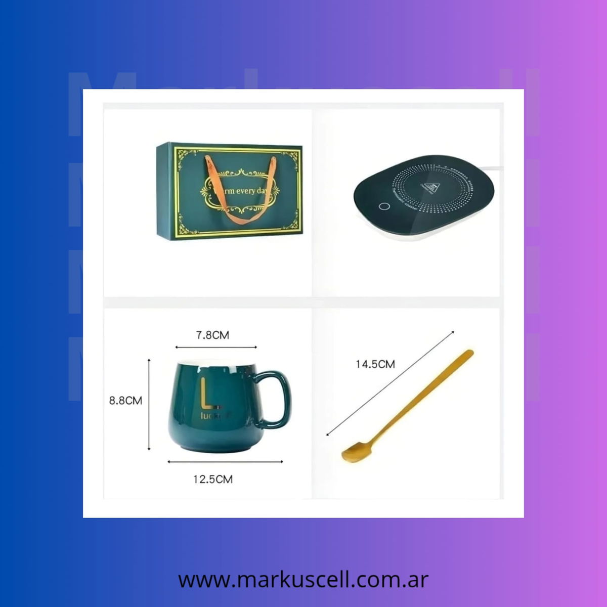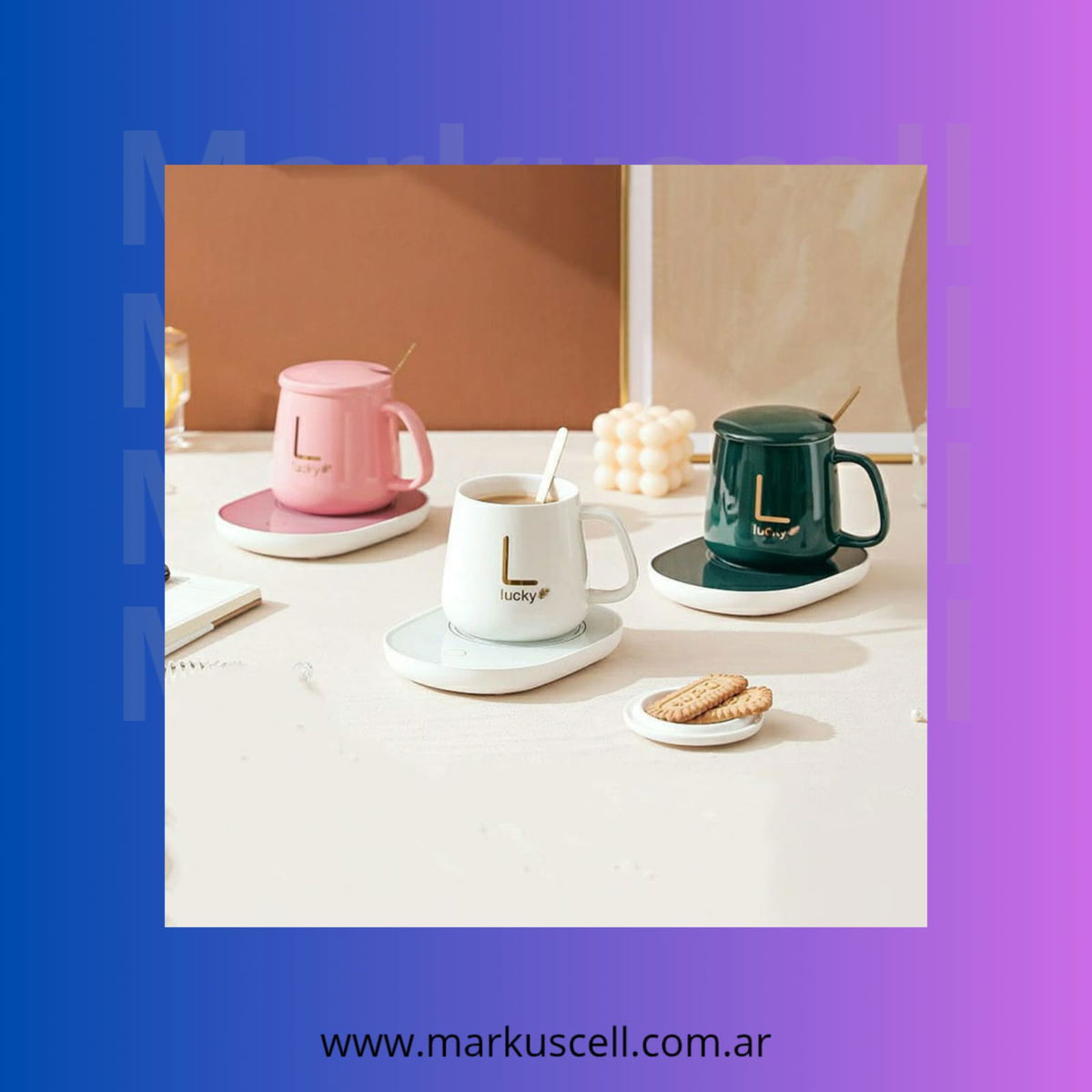 Taza con base calentadora electrica para mantener tus bebidas calientes.