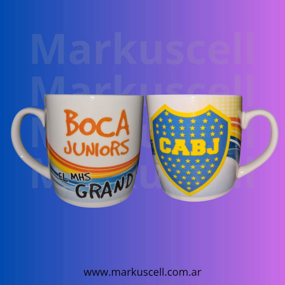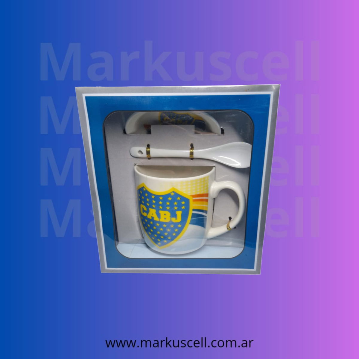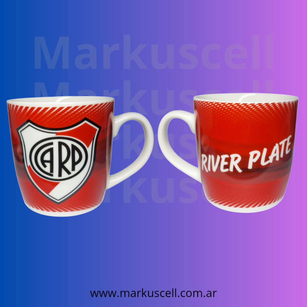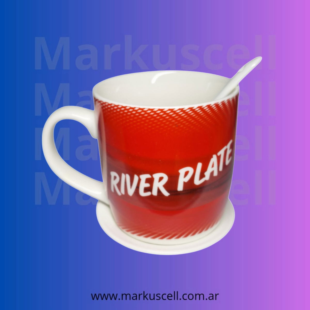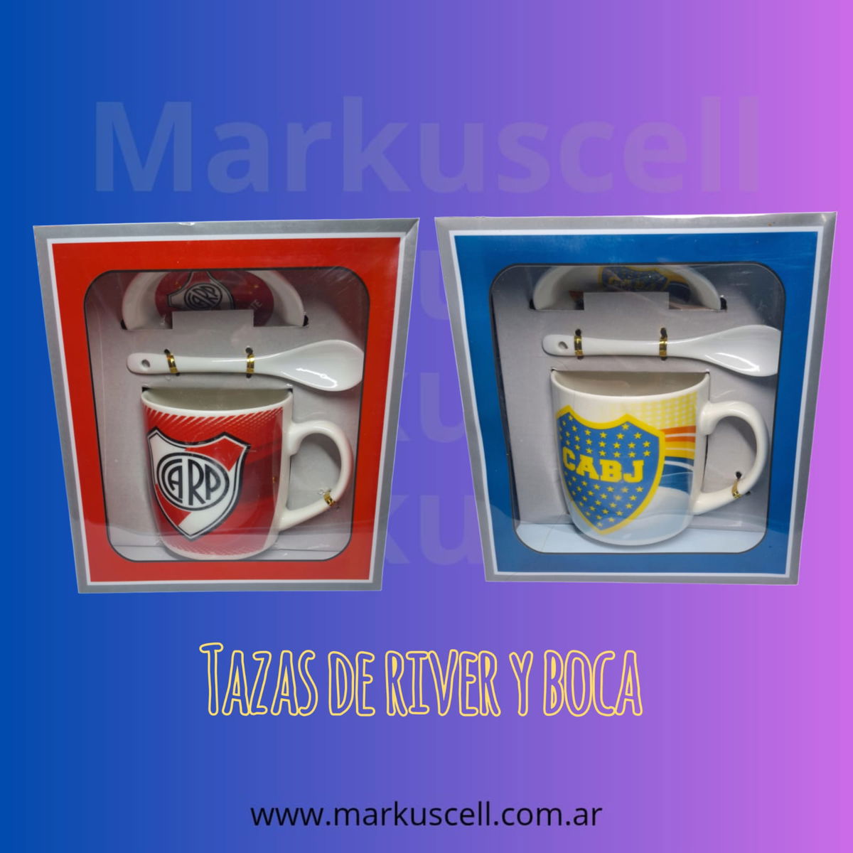 Tazas de RIVER y BOCA con plato y cuchara todo cerámica