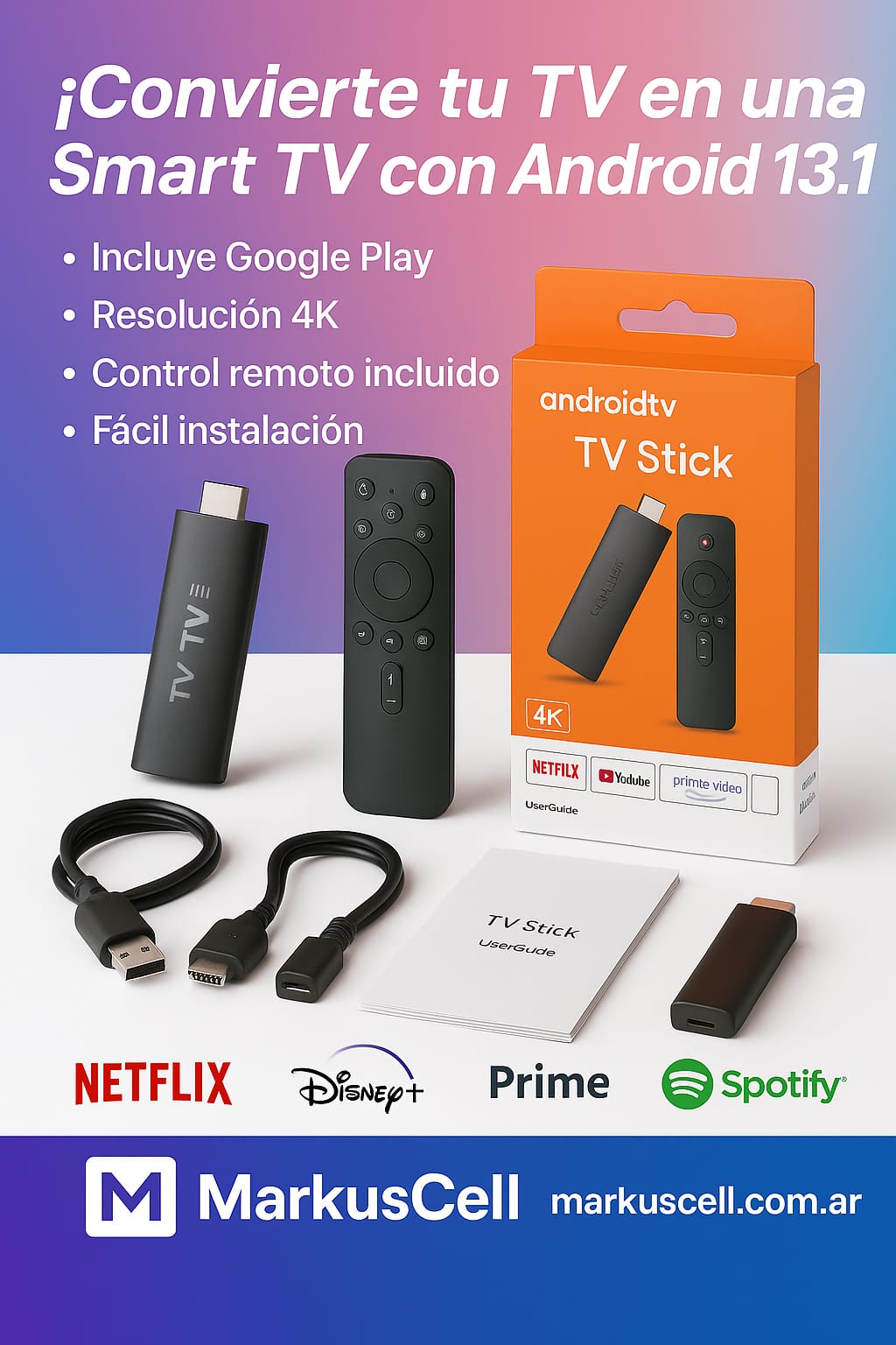Convertidor Smart Stick Android tv con Wifi Android 13.1