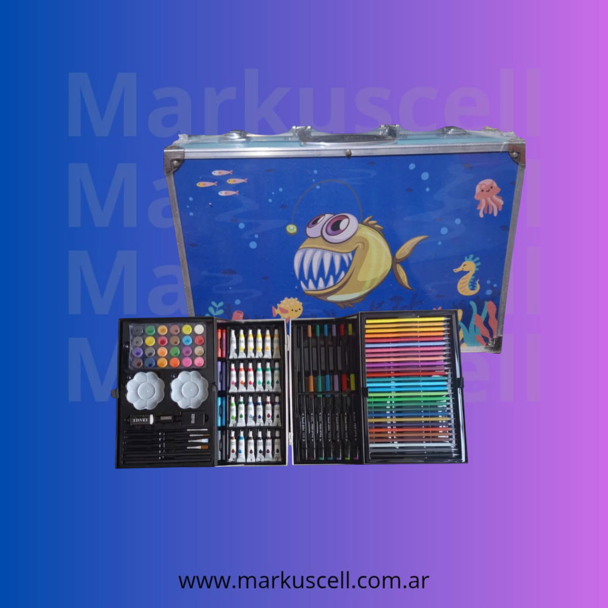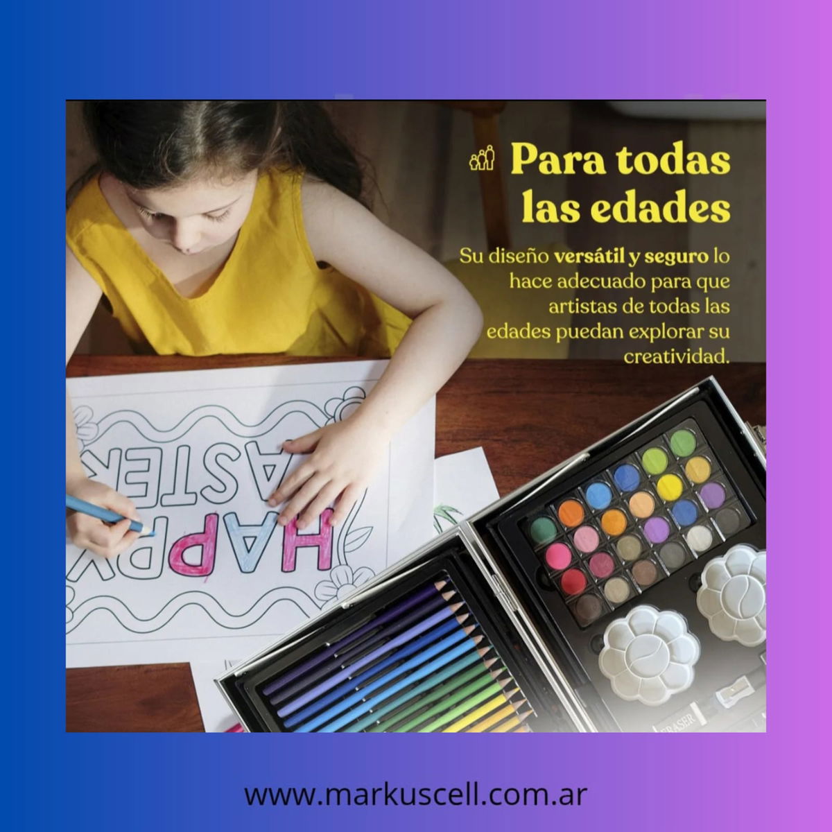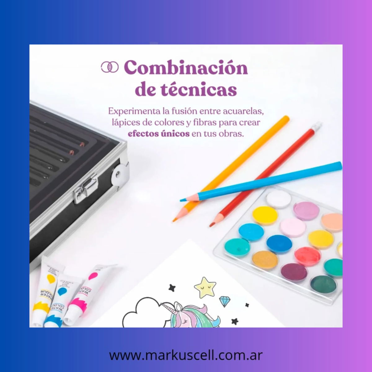 Valija Metálica Infantil de 131 piezas Con Fibras Touch 2ble Punta
