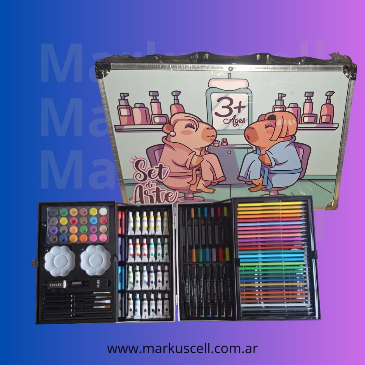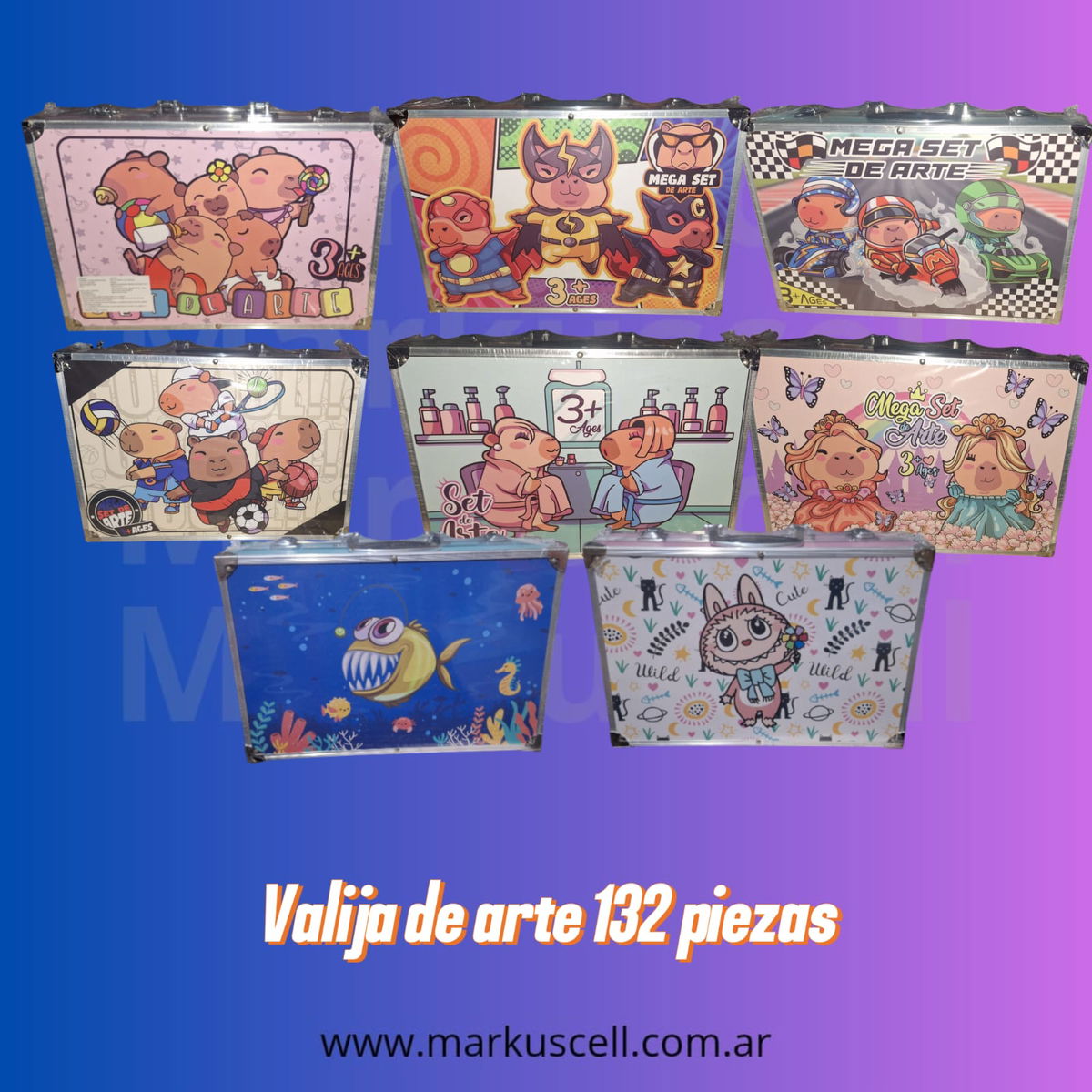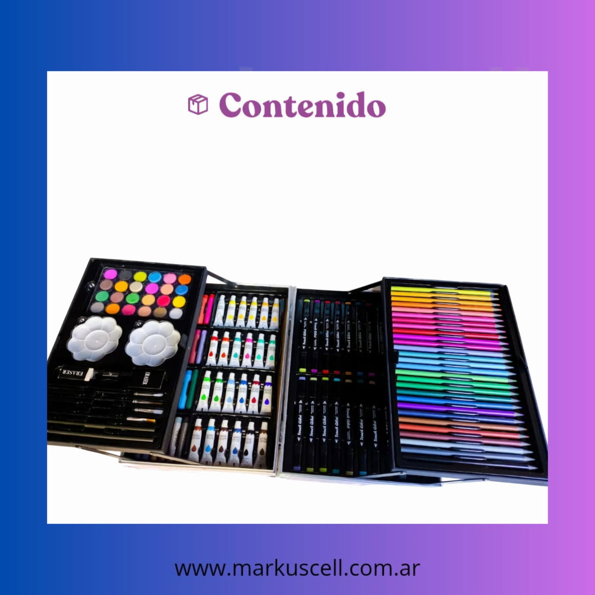 Valija Metálica Infantil de 131 piezas Con Fibras Touch 2ble Punta