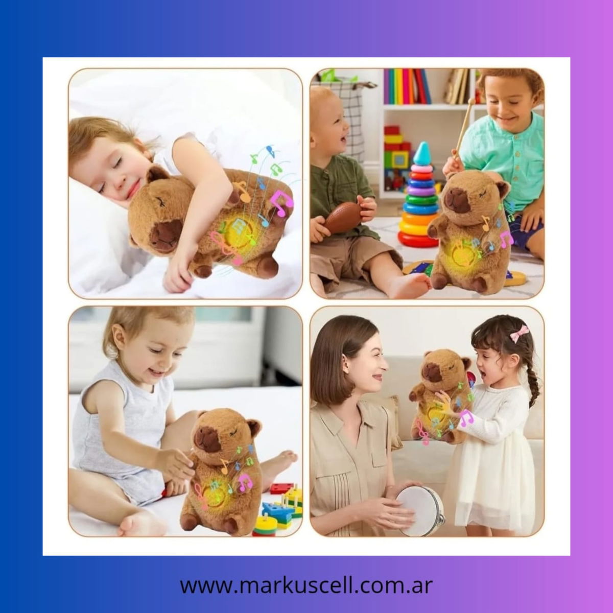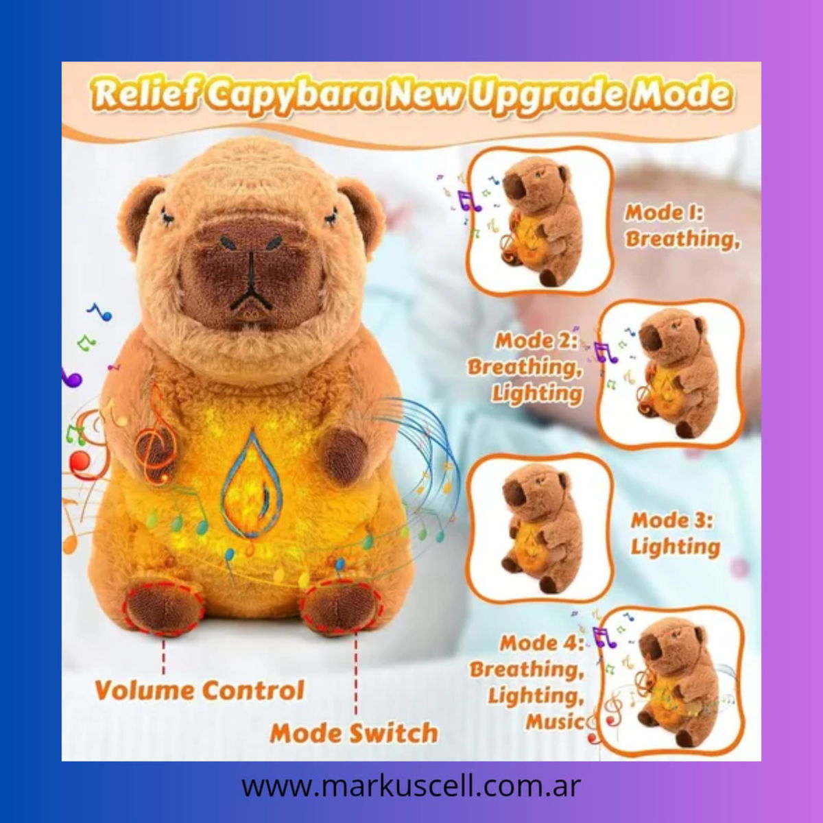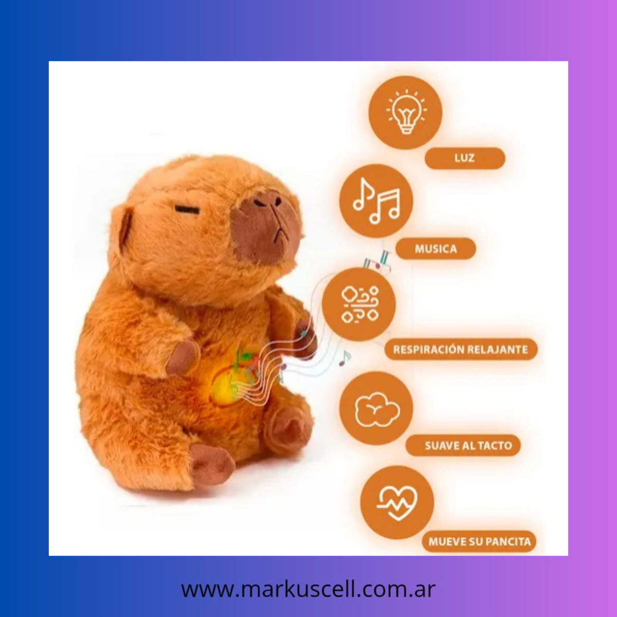 Su suave material de peluche y su relleno de fibra siliconada ofrecen una experiencia de abrazo única, mientras que las luces que adornan su cuerpo brindan un toque mágico. Ideal para acompañar las noches de los más pequeños, este peluche es apto para todo tipo de sensibilidades, gracias a sus materiales hipoalergénicos.