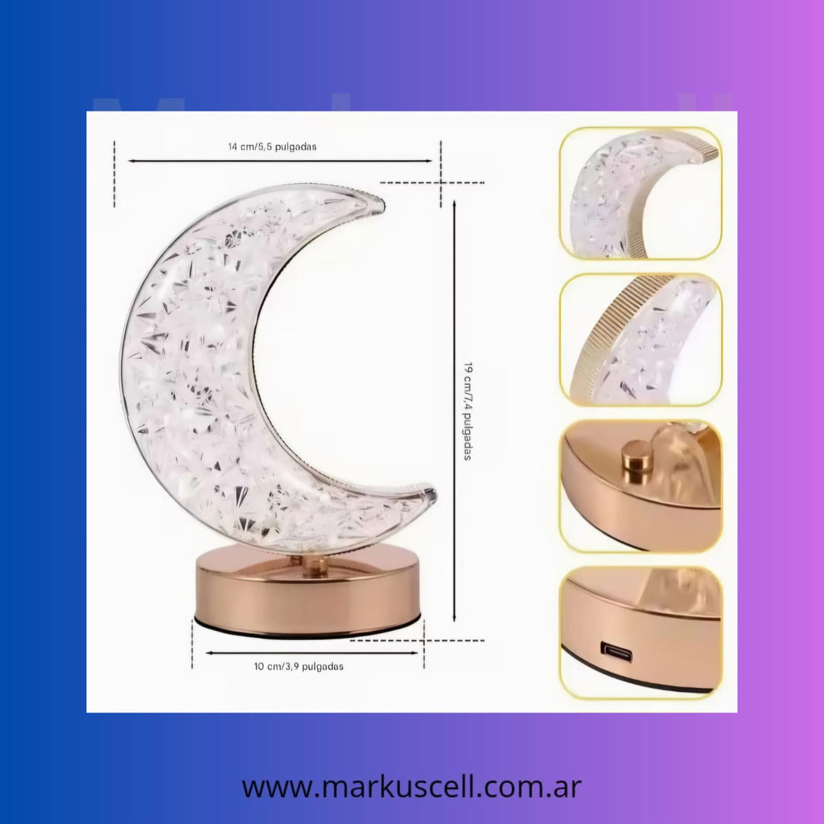 Lámpara De Mesa Velador Cristal Táctil Led Recargable Usb