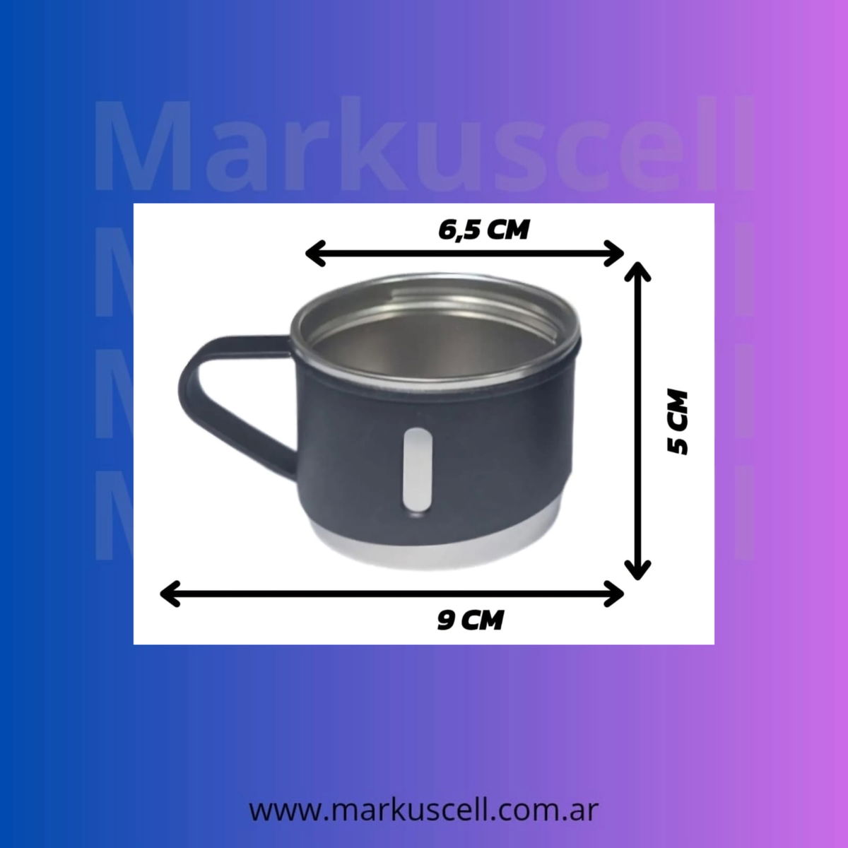 El termo cuenta con un sistema de apertura de tapa cebadora, que facilita su uso en cualquier momento. Para mayor comodidad, incluye tres tacitas de regalo que complementan su diseño práctico y elegante. Fabricado con materiales de acero inoxidable, tanto en el exterior como en el interior, este producto es resistente y de fácil limpieza, garantizando una experiencia agradable a cada uso.