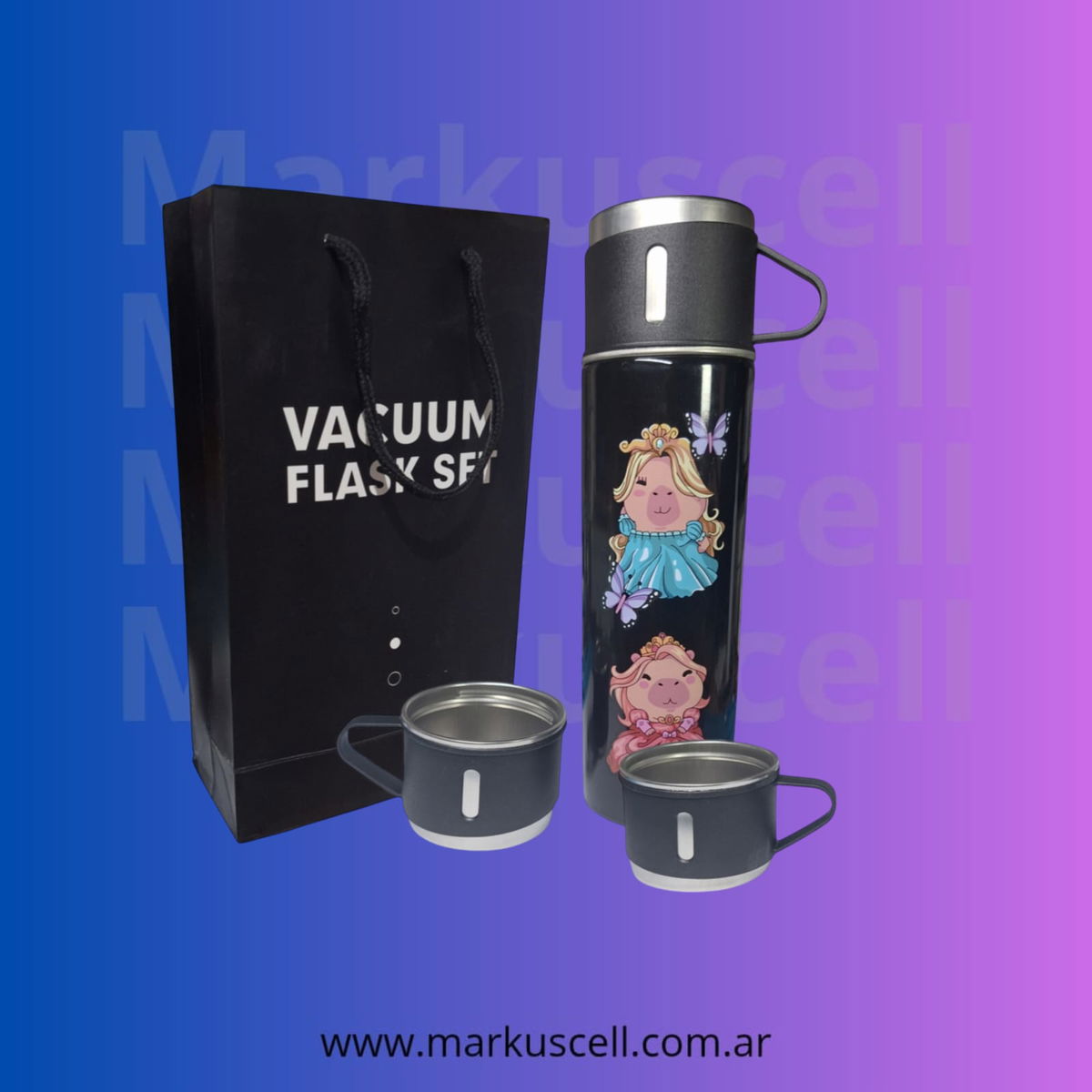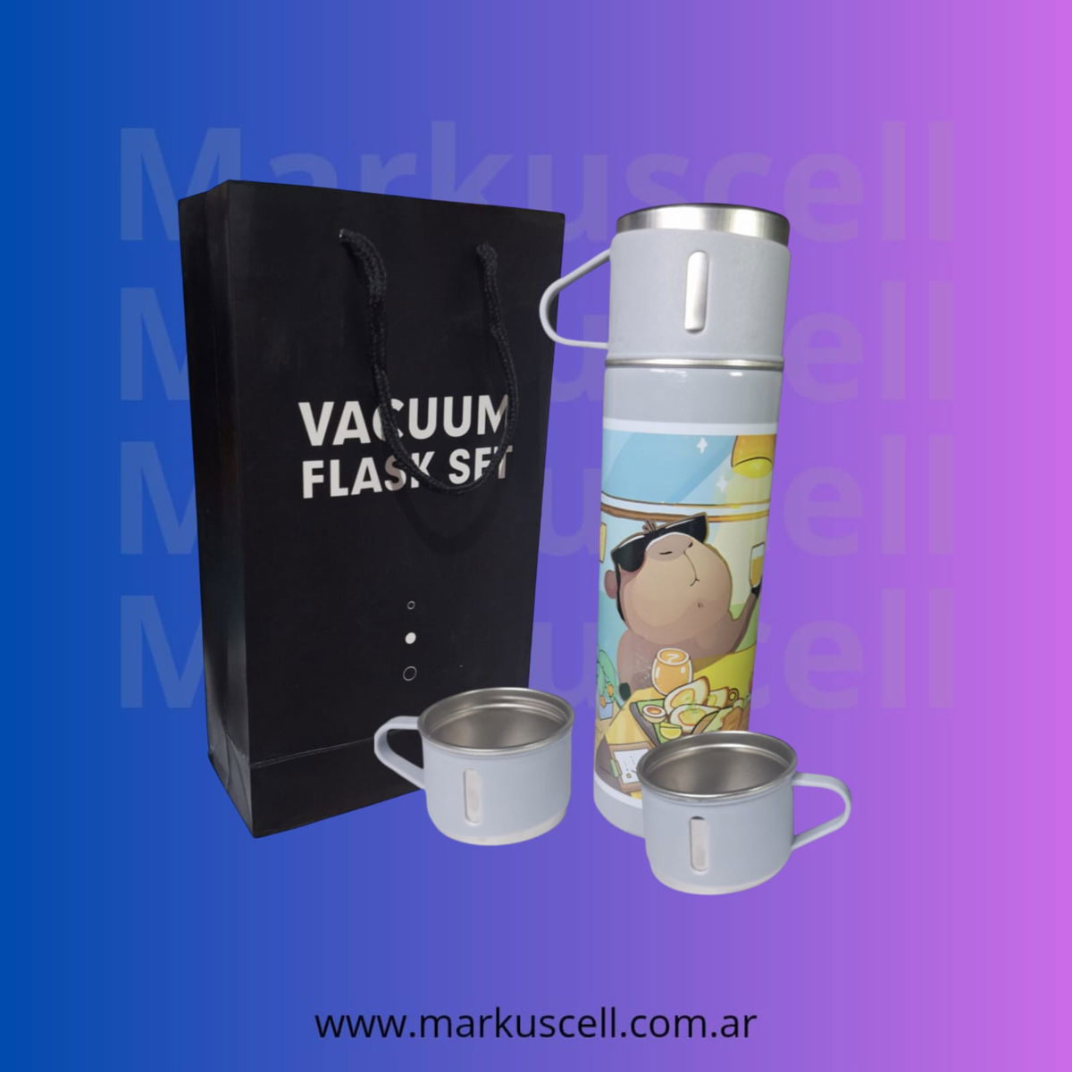 El Termo Capybara 500ml de acero inoxidable de la marca Vaccum Flask es la elección perfecta para quienes buscan funcionalidad y estilo en su día a día. Su diseño en color gris combina con cualquier entorno, ya sea para llevar a la oficina, de excursión o en el gimnasio. Con una capacidad de 500 ml, este termo permite disfrutar de tus bebidas frías o calientes durante 12 horas, manteniendo su temperatura óptima y asegurando un sabor fresco y auténtico.
