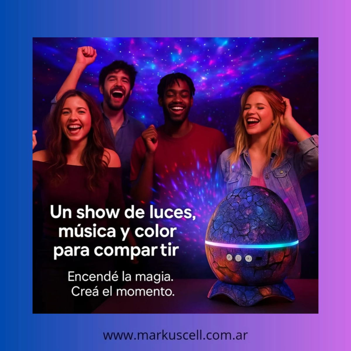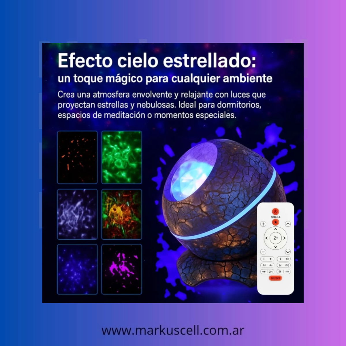 Transforma tus noches en una experiencia mágica con el Proyector Galaxia Nebulosa Huevo Parlante. Esta lámpara de noche, con un diámetro y ancho total de 12,5 cm y una altura de 17 cm, proyecta increíbles patrones de nebulosas en el techo y las paredes, creando un ambiente relajante y envolvente ideal para la meditación, el descanso o simplemente para embellecer tu espacio.