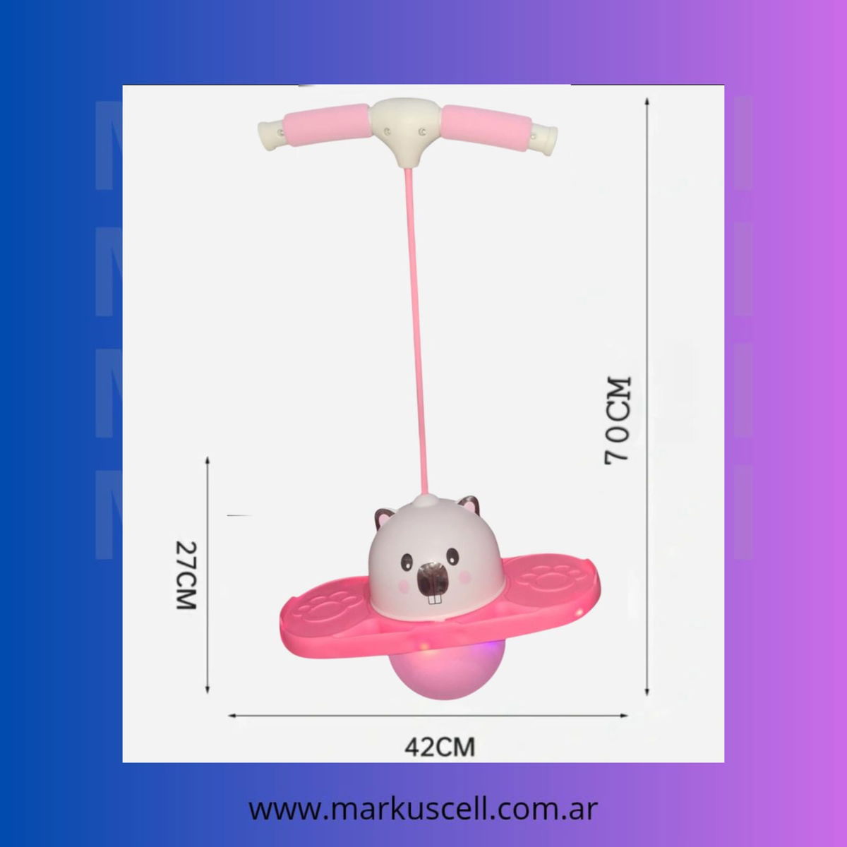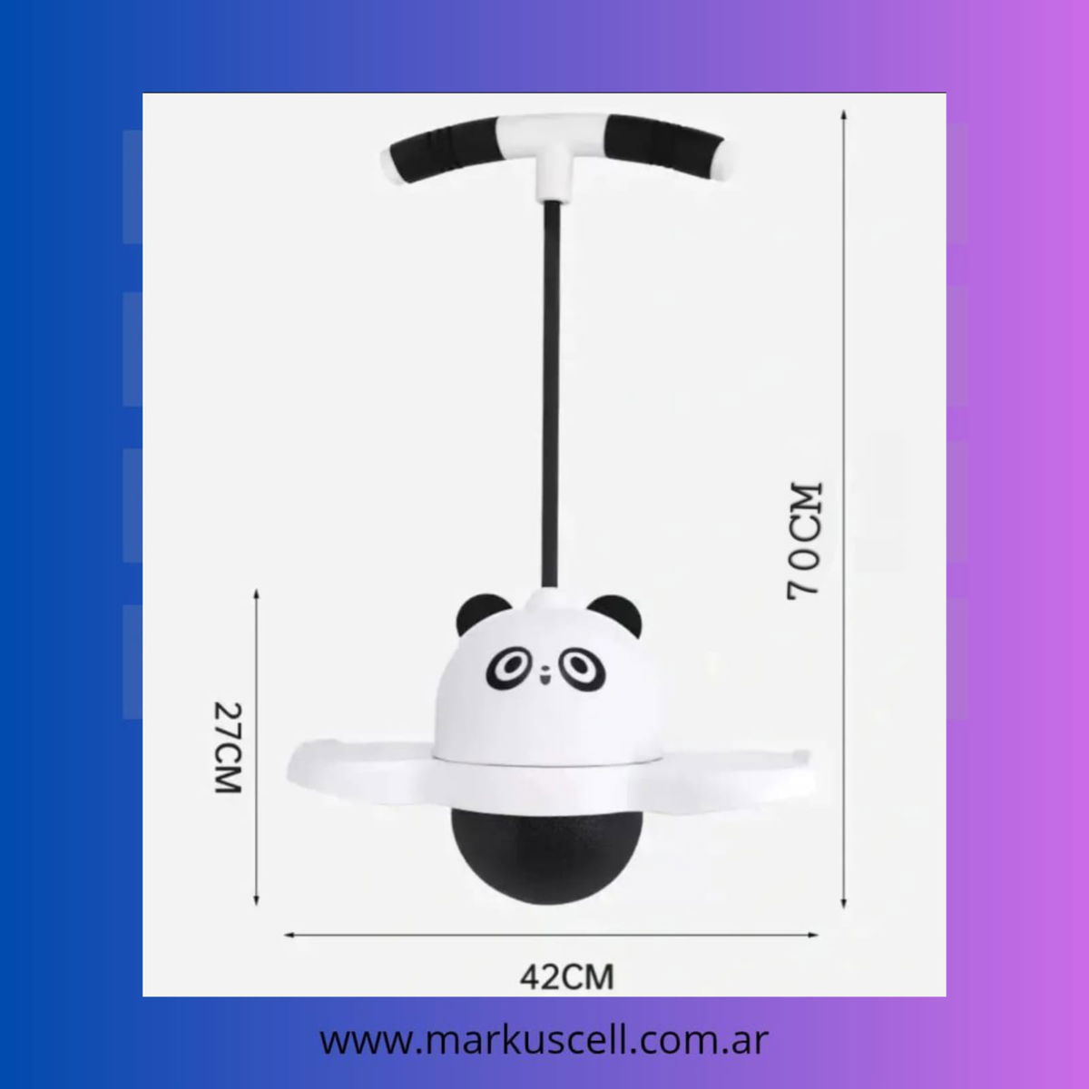 El Pogo Saltarín mide 70 cm de largo y 42 cm de ancho, proporcionando un espacio adecuado para que los niños se diviertan sin límites. Complementado con un inflador, este producto asegura que esté siempre listo para el juego y aventuras sin complicaciones.
