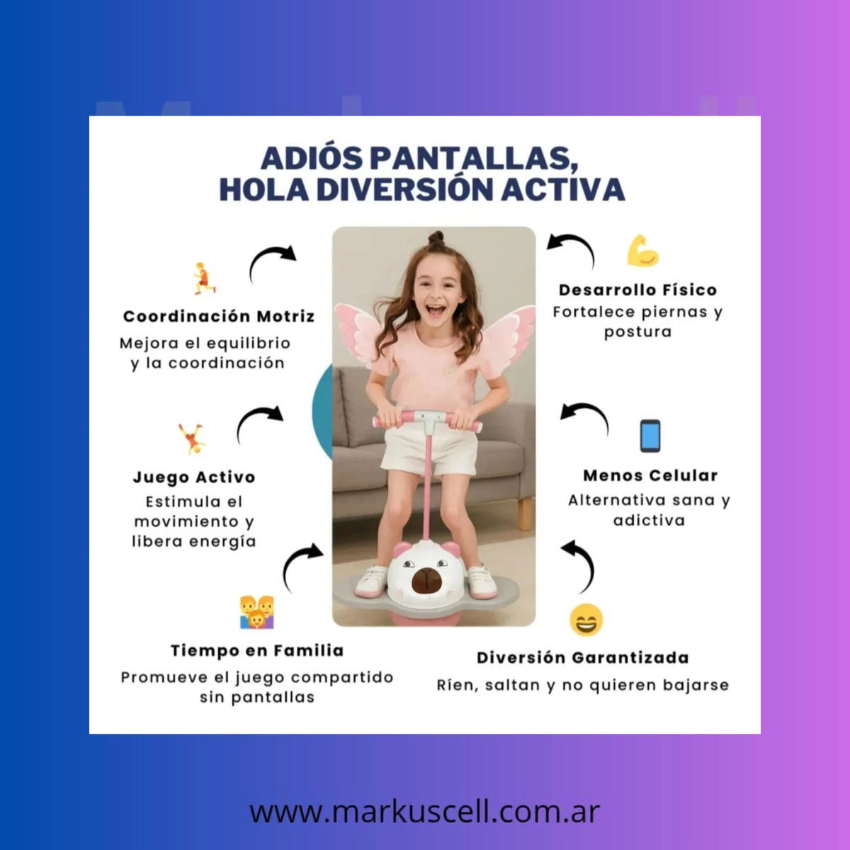 Este saltarín es ideal para diversas actividades al aire libre y en interiores, fomentando la socialización y la actividad física entre amigos. Es un gran regalo para cualquier ocasión, garantizando sonrisas y momentos inolvidables para los niños.