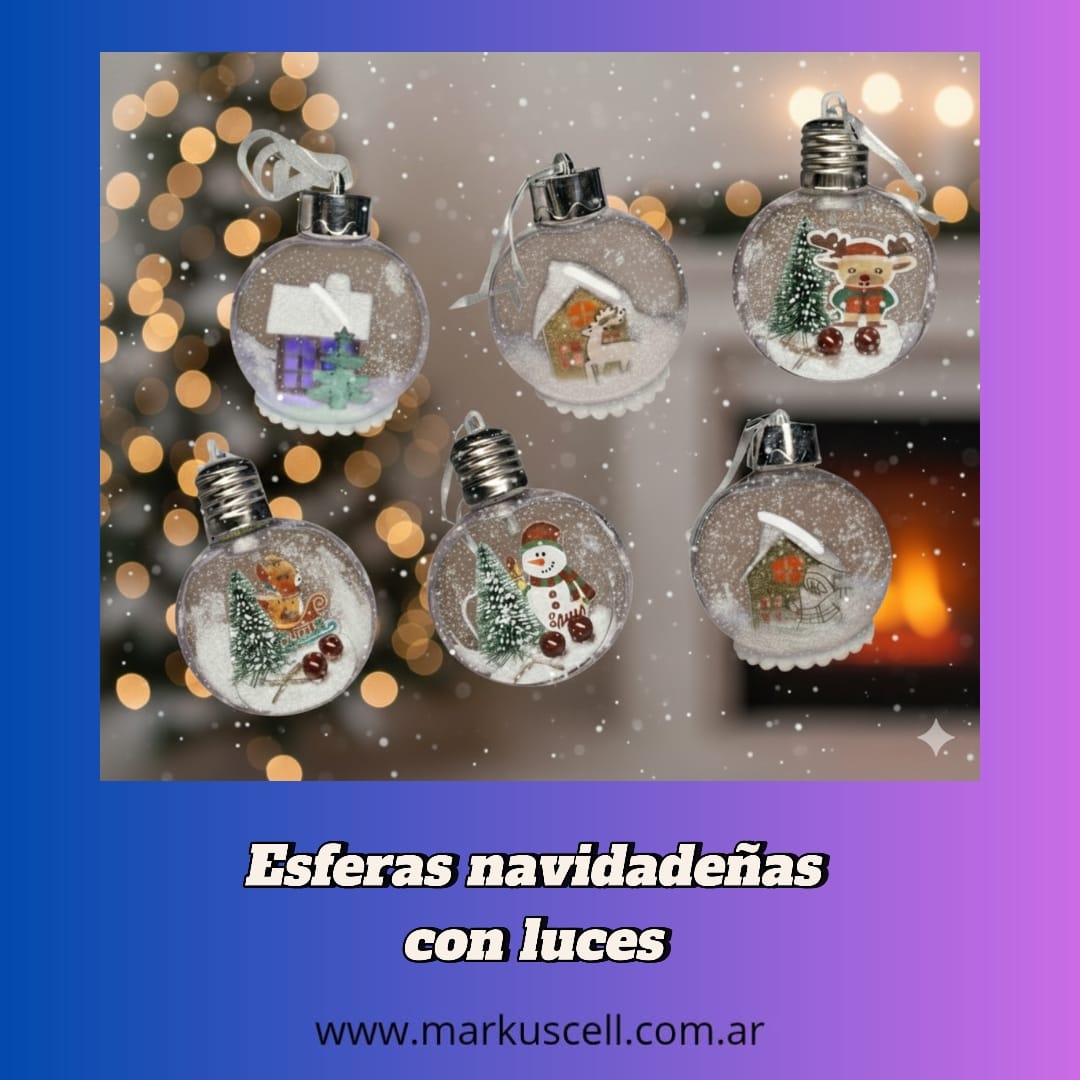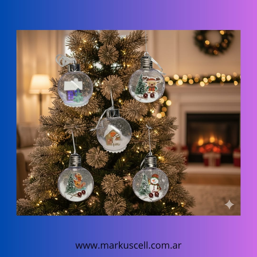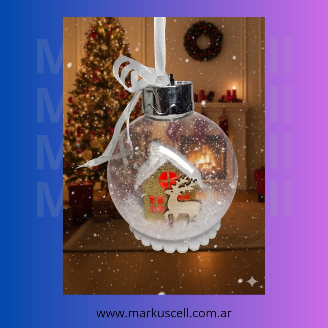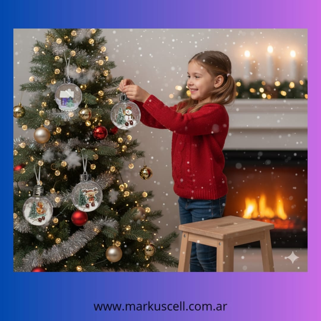 ​"Descubre la magia de la Navidad con nuestras encantadoras esferas traslúcidas. Cada una encierra un pequeño universo festivo: desde acogedoras casitas nevadas hasta alegres muñecos de nieve y renos juguetones. Con su diseño delicado y su brillo sutil, estas esferas capturan la luz y el espíritu navideño, creando un ambiente cálido y mágico en tu hogar. Perfectas para embellecer tu árbol o como un regalo especial, estas esferas son la adición ideal para unas fiestas inolvidables."