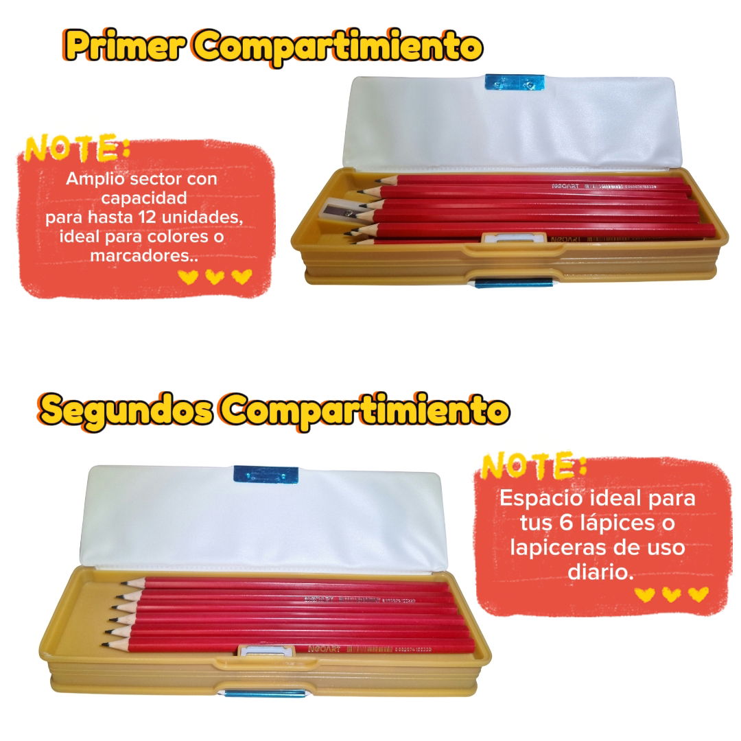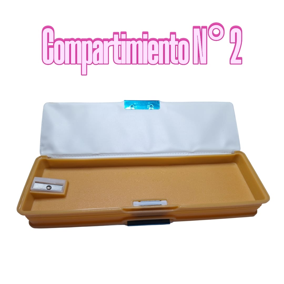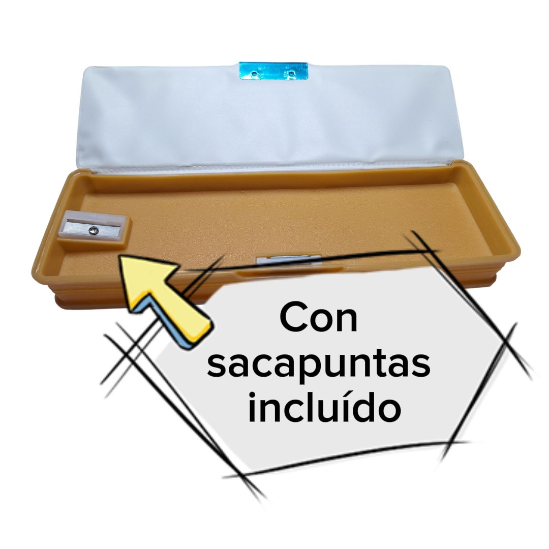 Cartuchera Canopla Doble Dos Pisos Rigida Kawaii Sacapuntas Marrón